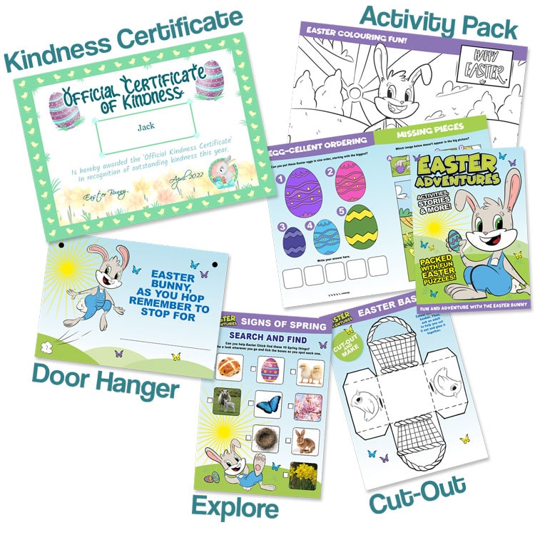 We also have a range of additional activities which can be included in the letter, such as a Kindness Certificate, Stop Here Door Sign, Activity Sheet, festive cut outs plus a text message from Easter Bunny on Easter Sunday.