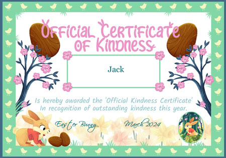 We can make your Easter bunny letter extra special by adding a personalised kindness certificate, so your little one can be the envy of their friends.