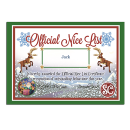 We can make your Santa letter extra special by adding a personalised nice list certificate, so your little one can be the envy of their friends.