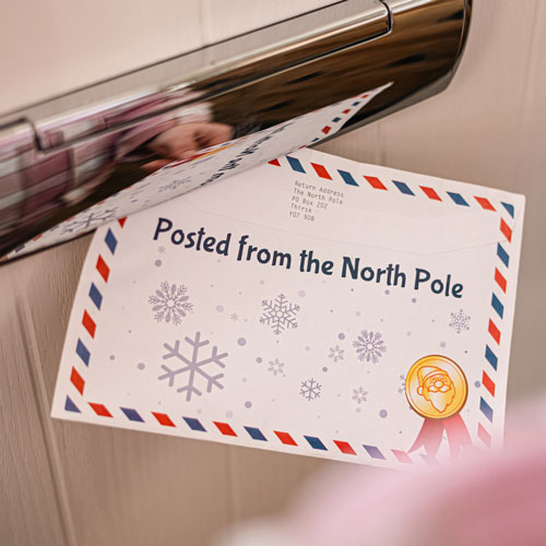 The envelope, is pre-addressed to Santa at the North Pole. Just pop in the letter, seal it and pop a stamp on it, and it's then ready to embark on its magical journey northward.
