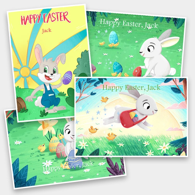 The Easter bunny will soon be heading out to deliver the chocolate eggs but does have a little time to post a personalised postcard to your little one.
