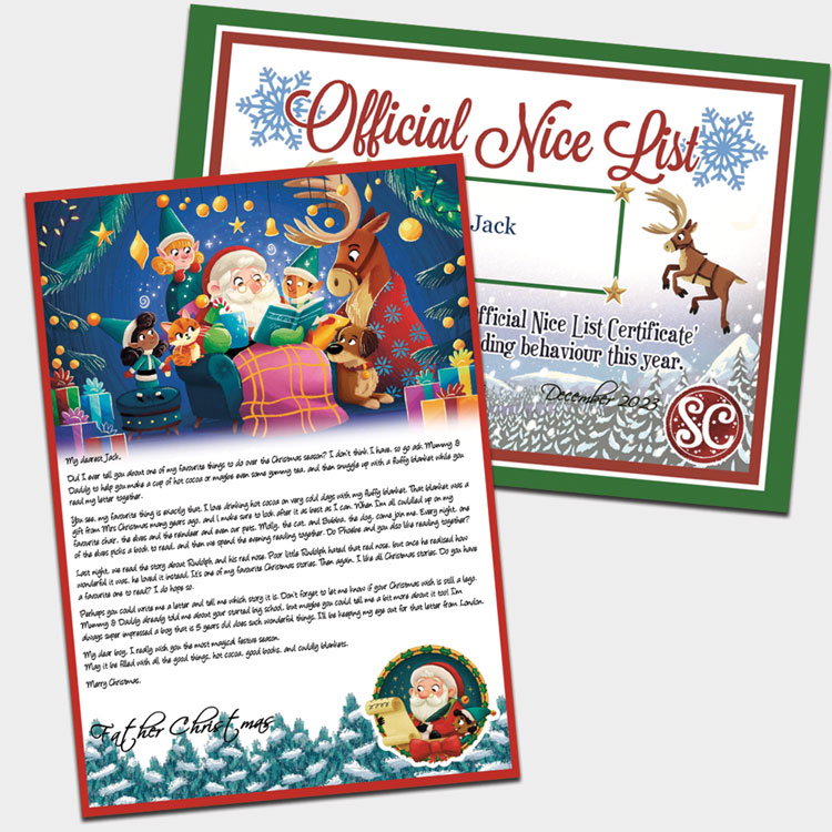 Bring the magic of the North Pole straight to your child's door! Choose from a delightful array of personalised keepsakes — from letters and certificates to videos and storybooks. Each item is carefully crafted with love and attention to detail: