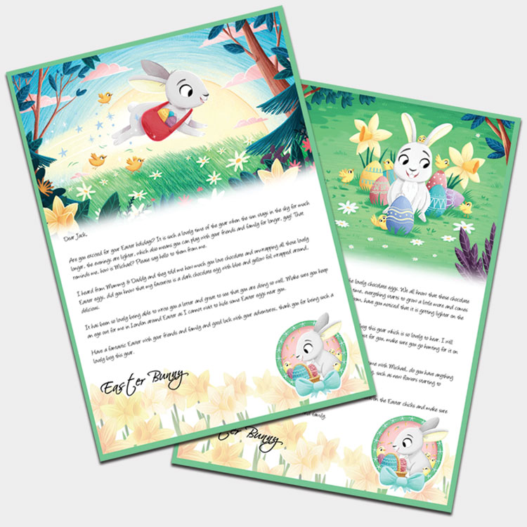 Each letter is personalised, printed, posted and then delivered direct to your child in a easter envelope.